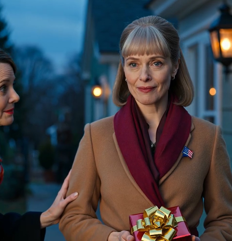 ‘We hebben dit jaar een privékok ingehuurd,’ antwoordde Diana, haar glimlach verstrakte. Ze nam het gerecht aan en hield het op afstand van haar jurk, alsof het de stof zou kunnen bevuilen door er te dichtbij te komen. ‘Maar… bedankt. Ik zet dit in de keuken.’