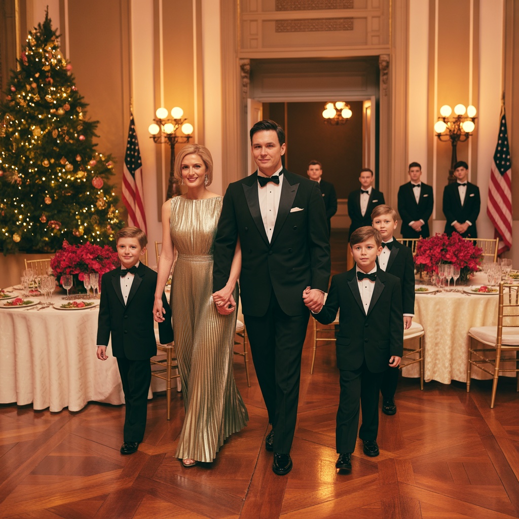 Mijn man, lang, kalm en met een uitstraling alsof hij de eigenaar van het huis was, stapte vlak naast me naar binnen. En direct achter ons kwamen onze vier zoontjes – drie identieke driejarigen in kleine, op maat gemaakte pakjes, en onze achtjarige die voorop liep als een prins.