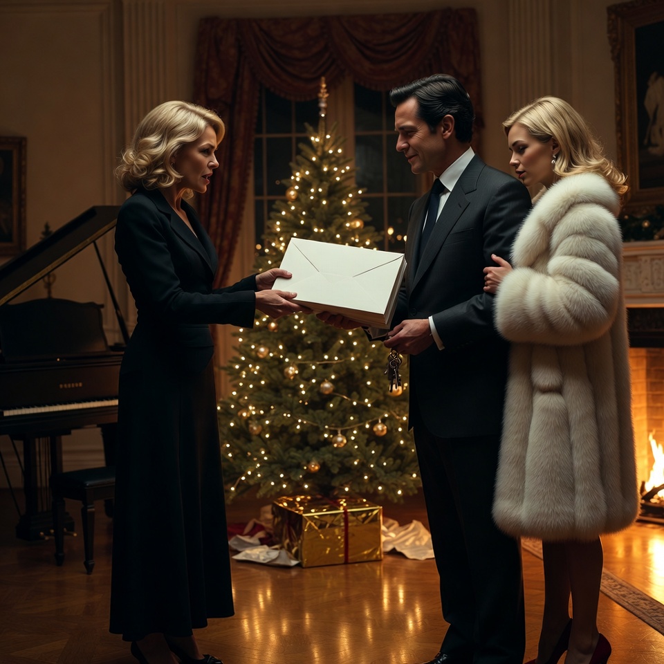 Het vuur in de open haard knetterde en wierp lange, dansende schaduwen over de woonkamer van ons herenhuis in Manhattan. Het was kerstavond en de lucht rook naar dennennaalden, kaneel en de dure whisky die mijn man, Richard, bij het raam aan het nippen was.