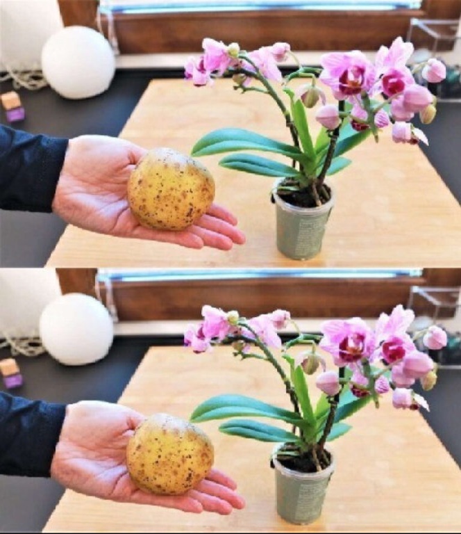 Om uw orchideeën de juiste groeikracht te geven, hebt u slechts een kleine aardappel (in werkelijkheid is 20 gram voldoende) en een liter water nodig.