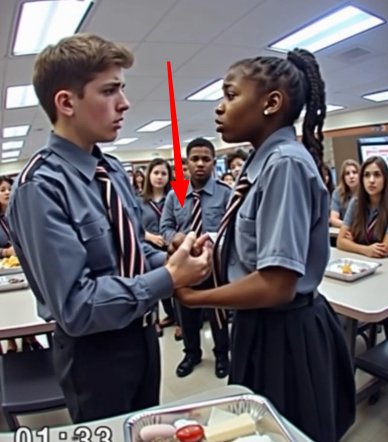 Pestkoppen proberen de borst van een zwart meisje op school te betasten, zonder te weten dat ze gevaarlijk is