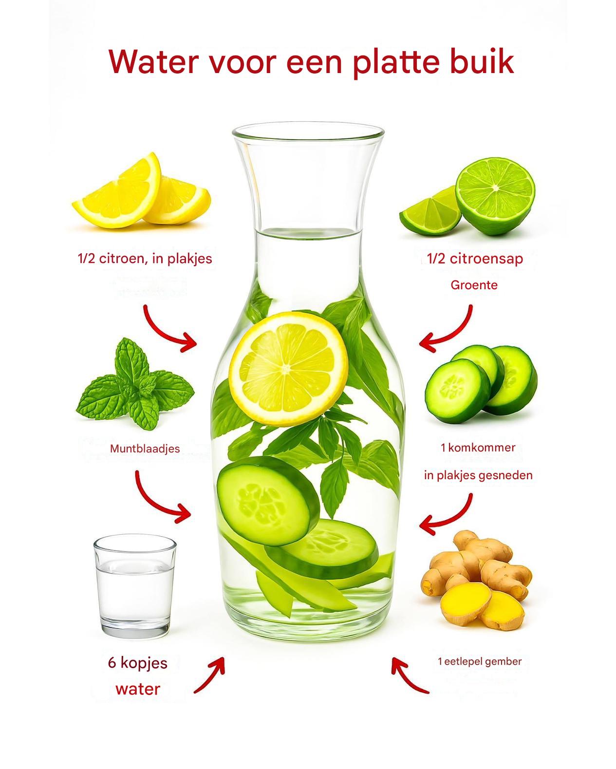 Flat Belly Water is een verrijkt water dat gemaakt wordt door fruit, kruiden en groenten te laten weken. Het is lekker en gezond. Het bevordert de spijsvertering, stimuleert de stofwisseling en helpt een opgeblazen gevoel te verminderen.