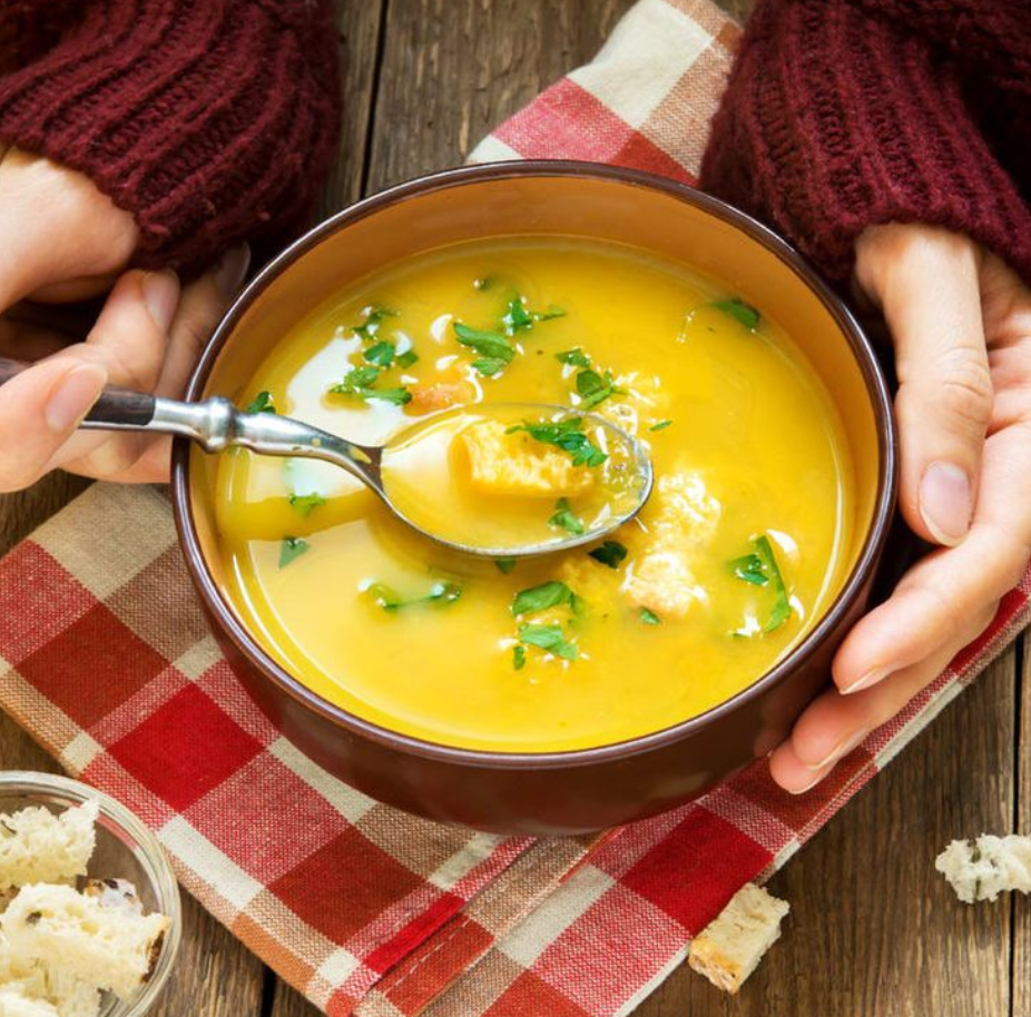 Een zoete mix van pompoen en kastanjes, opgefleurd met een romige noot. Perfect voor koude dagen.