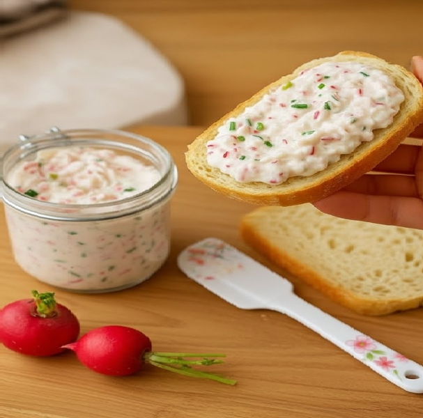 5. Pureer de uitgelekte radijsjes met de roomkaas, bieslook en ui tot een gladde massa.