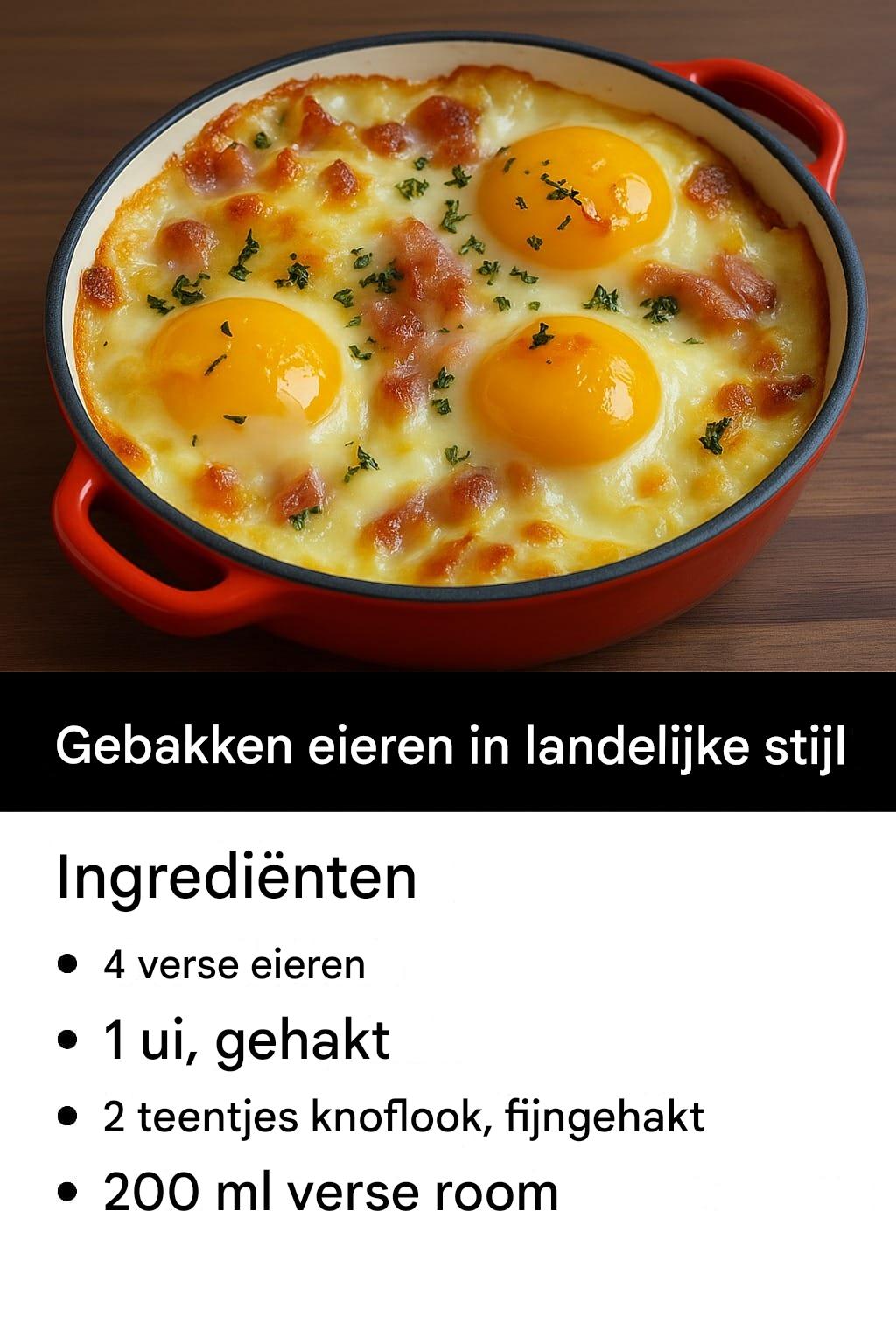 Dit is een gezellig recept, ideaal voor een brunch, een snelle lunch of een troostrijk diner. Deze gebakken eieren in landelijke stijl zijn gemakkelijk te bereiden en aantrekkelijk door hun eenvoud en authenticiteit.