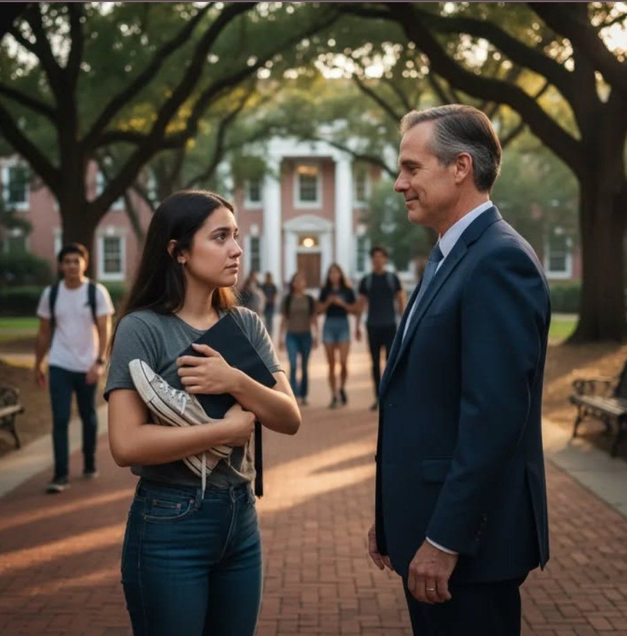Zijn stem was nauwelijks hoorbaar boven het lawaai van het verkeer en de banden die door het water spatten. De student kantelde zijn hoofd alsof hij uit een totaal andere wereld kwam. Er was geen ongeduld, geen neerbuigendheid, alleen nieuwsgierigheid, bijna als een raadsel dat zich plotseling aan hem had voorgedaan. « Mag ik mijn schoenen lenen? » herhaalde hij, terwijl er een lichte, geamuseerde glimlach op zijn lippen verscheen.