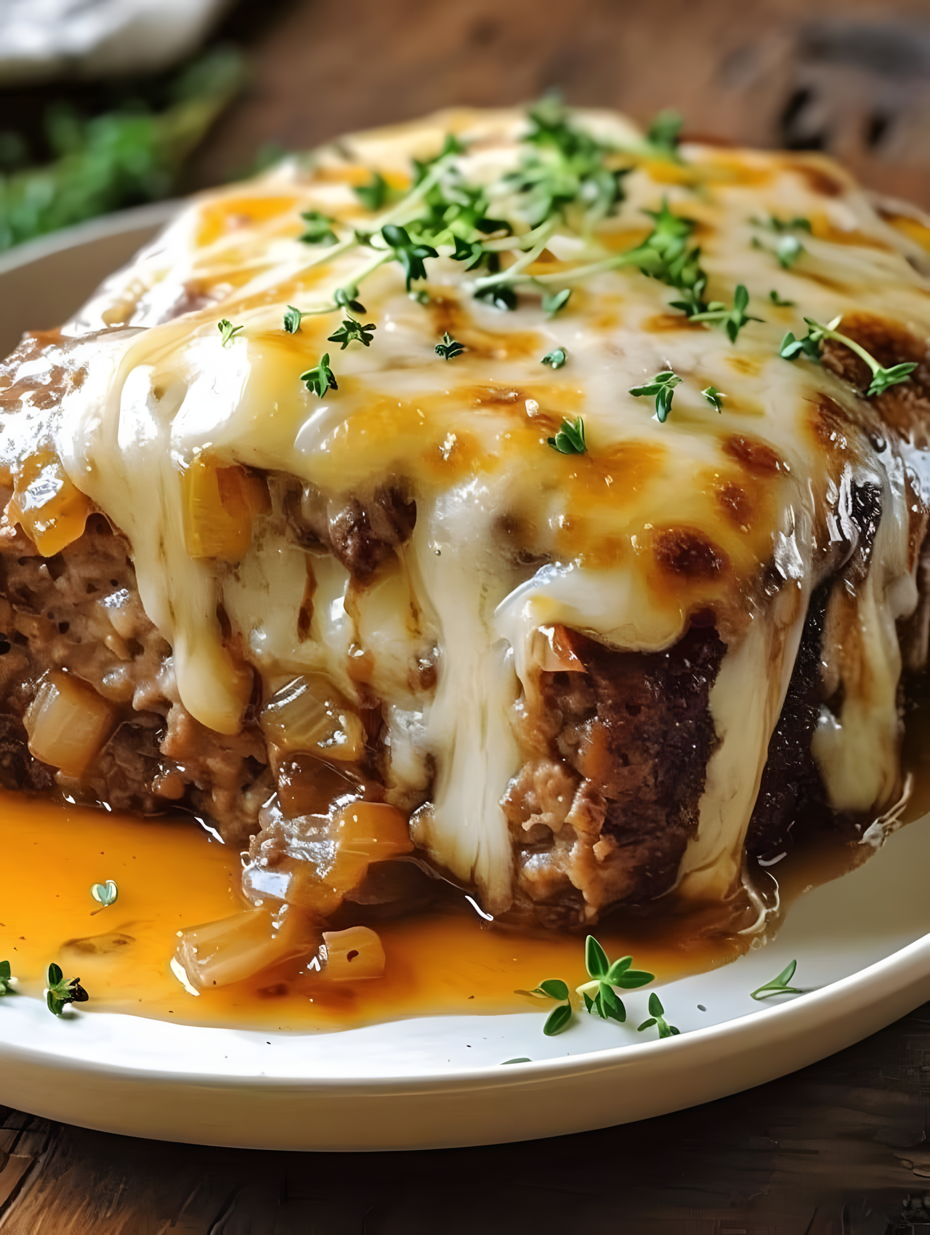Dit Franse Uiengehaktbrood is de ultieme comfort food! Sappig, boordevol smaak en bedekt met kleverige, smeltende Zwitserse kaas, perfect langzaam gegaard. Ideaal voor een familiediner of om maaltijden voor te bereiden! 😍