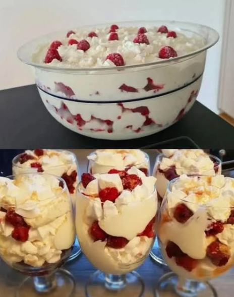 Deze “sneeuwdouche” van magere kwark is een licht en romig dessert dat in een paar minuten klaar is.