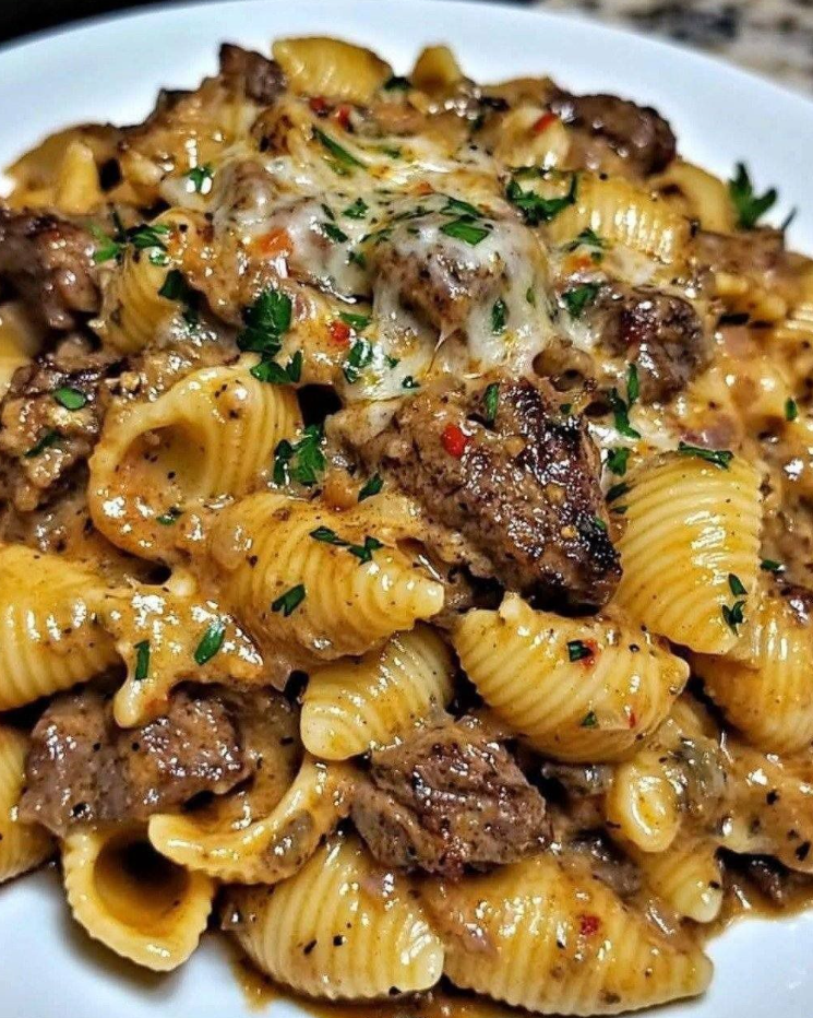 Een snelle en stevige maaltijd die malse, knoflookachtige steakbites combineert met romige, kaasachtige schillen. Perfect voor een romantisch diner, een familiediner of om jezelf te trakteren, biedt dit gerecht rijke smaak en minimale moeite.