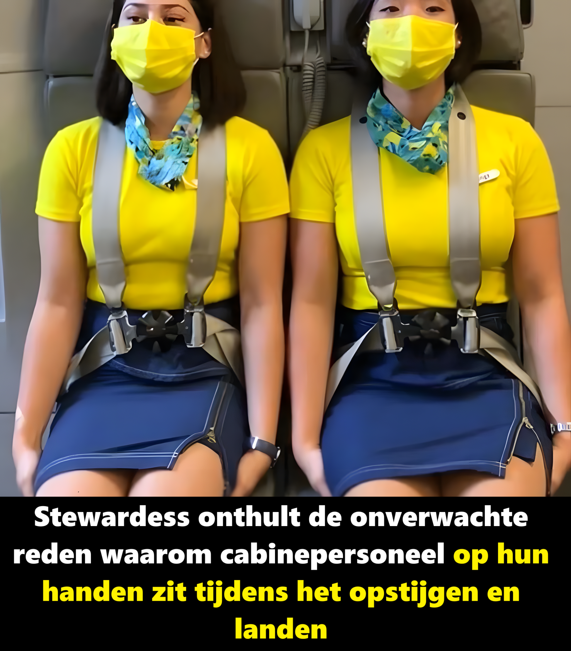 Stewardess onthult de onverwachte reden waarom cabinepersoneel op hun handen zit tijdens het opstijgen en landen