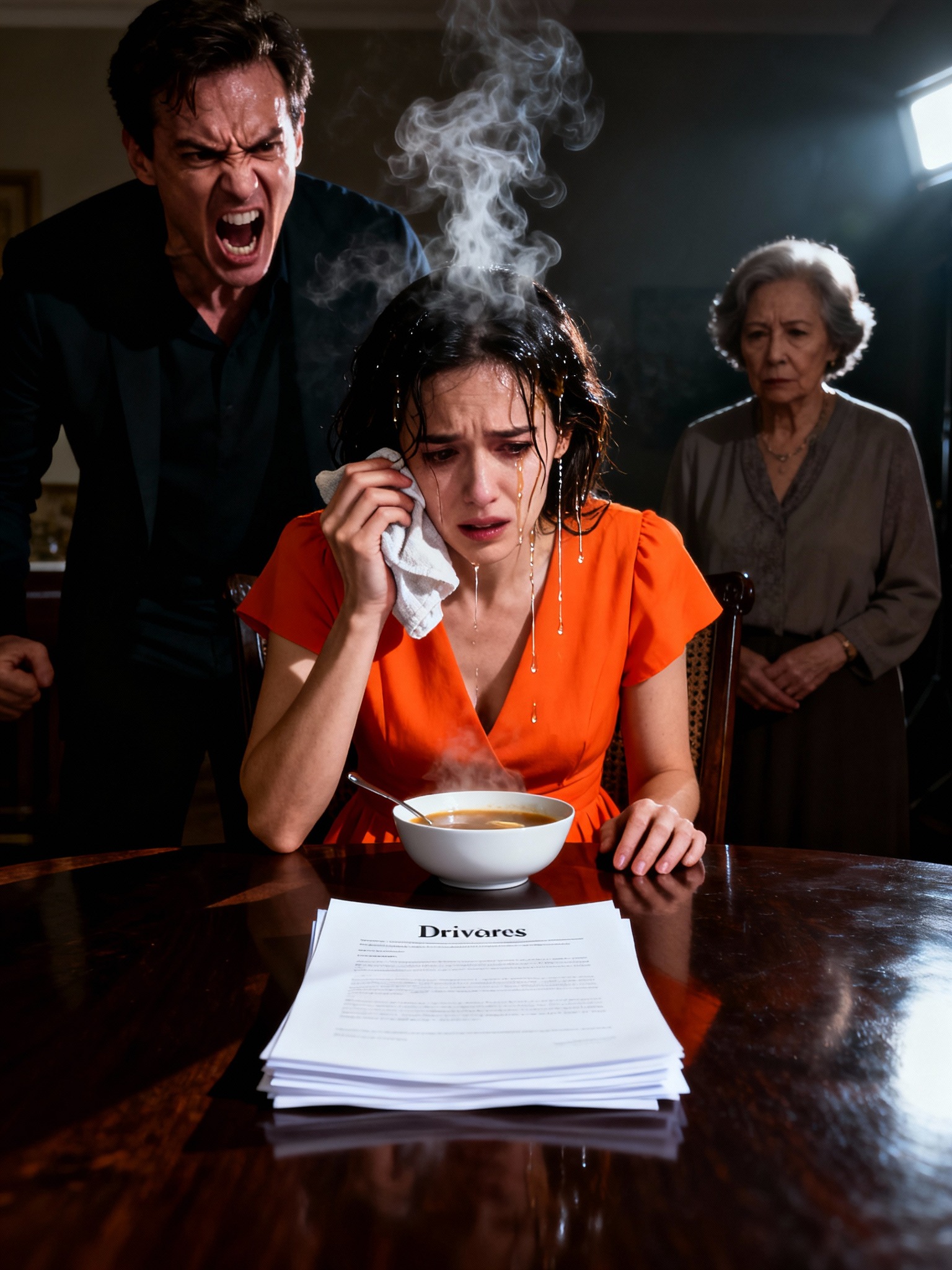 Toen ik mijn servet op de grond liet vallen en me voorover boog om het op te rapen, hoorde ik een spottende opmerking over « mijn gebruikelijke onhandigheid ». Ik besloot het te negeren. Maar net toen ik opstond, tilde Andrew de terrine op en goot zonder waarschuwing de kokende inhoud over mijn hoofd. De gloeiendhete vloeistof gleed langs mijn gezicht, mijn nek en mijn schouders. De pijn was direct, maar wat me nog meer verlamde, was het gelach van zijn moeder.