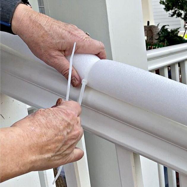 Snijd de noedels in verschillende lengtes en gebruik ze om een rand langs de zijkanten van je veranda te maken. Dit geeft je veranda een unieke en stijlvolle uitstraling en vormt tegelijkertijd een barrière om te voorkomen dat mensen van de veranda afstappen. Je kunt de noedels ook gebruiken om een decoratief patroon op de vloer van je veranda te creëren.