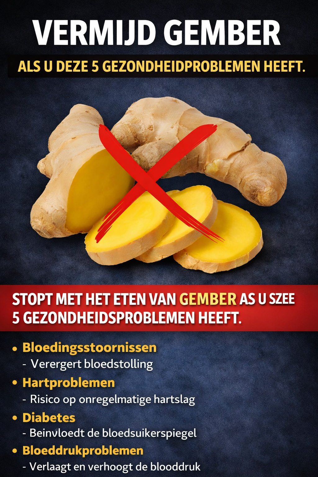 Waarom? Gember kan de bloeddruk verlagen.