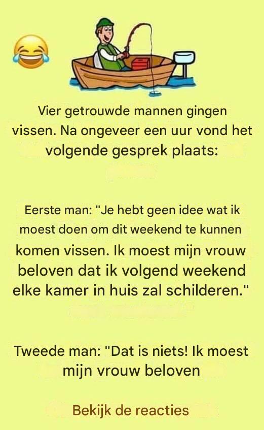 « Jullie hebben geen idee wat ik heb meegemaakt om hier te komen », zei hij. « Ik heb het hele weekend het hele huis geschilderd – elke muur, elk plafond – zodat mijn vrouw me vandaag zou laten vissen. »