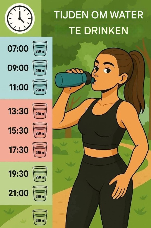 Hieronder vind je de beste momenten om gedurende de dag voldoende te drinken.