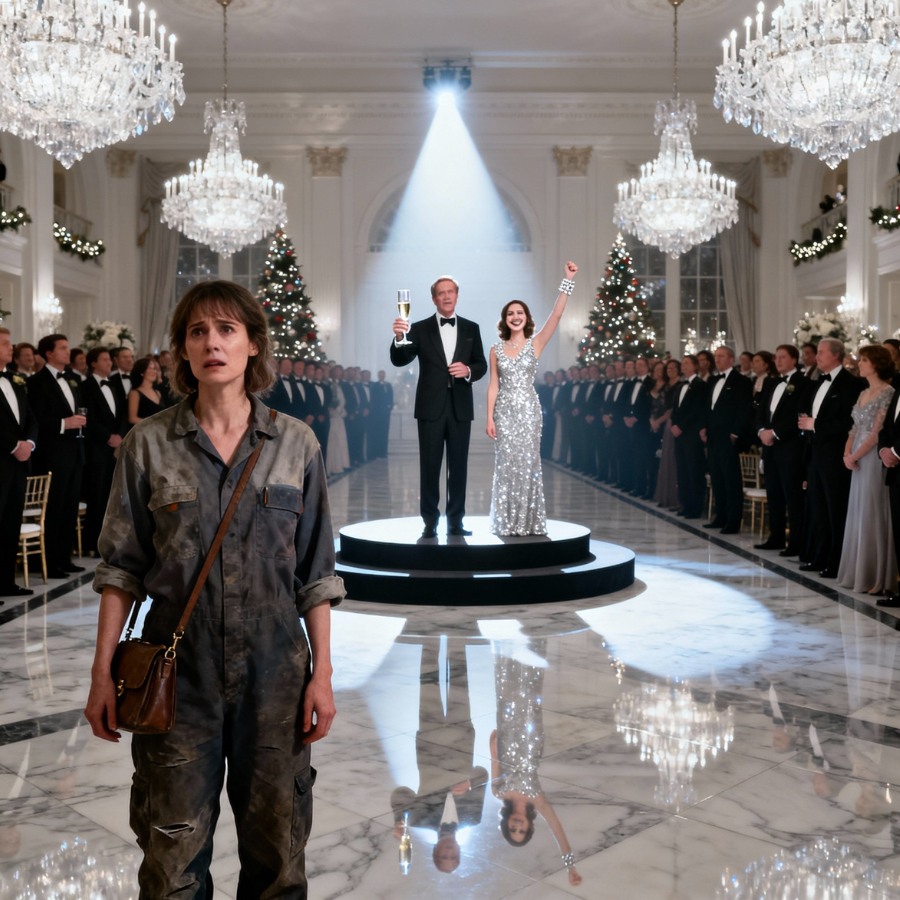 Ik dacht dat ik tijd genoeg had. In plaats daarvan belandde ik midden in Kinsleys verlovingsfeest. Kristallen kroonluchters. Een strijkkwartet. Tweehonderd mensen in cocktailkleding keken toe hoe mijn jongere zusje haar ring showde onder zacht, romantisch licht, terwijl ik daar stond in mijn werkkleding, nog nat van de metro.