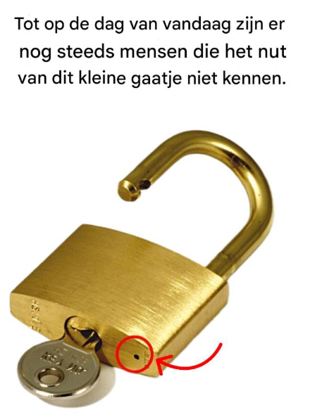 Een hangslot is een alledaags voorwerp met een belangrijke functie. Mensen gebruiken ze voor hun fietsen, schuurtjes, gereedschapskisten en poorten. Ze zijn ontworpen om bestand te zijn tegen de elementen en pogingen om ze te beschadigen of door te knippen. Ze hebben echter een geheime functie: een klein gaatje aan de onderkant.