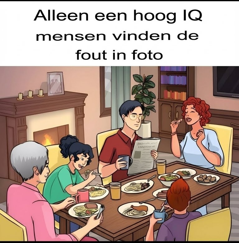 Vind binnen 10 seconden de fout op de foto van het familiediner!