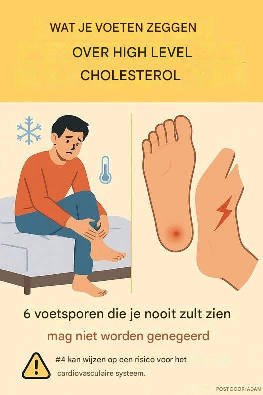 Een hoog cholesterolgehalte veroorzaakt vaak geen zichtbare symptomen, maar kan wel zichtbare tekenen in je ledematen veroorzaken, met name in je voeten.