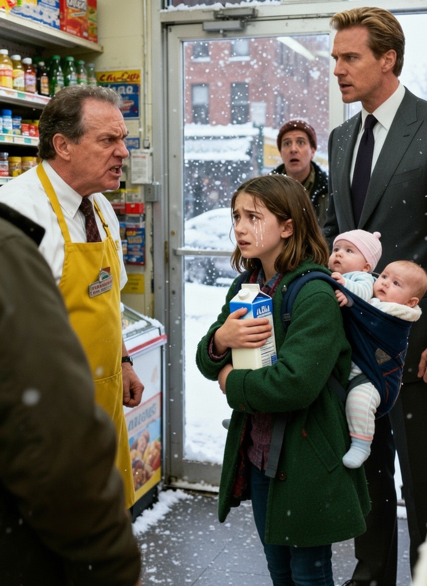 Haar naam was Emily Carter. Ze was van nature geen dief – ze was gewoon een kind dat door omstandigheden gedwongen was. Thuis wachtten haar twee jongere broertjes en zusjes, de zesjarige Liam en de vierjarige Sophie, op haar. Ze hadden sinds de vorige dag niets meer gegeten. Hun moeder was twee jaar geleden overleden en hun vader, die kampte met depressies en allerlei klusjes, was nauwelijks thuis. Die dag nam Emily de wanhopige beslissing om één ding te stelen dat hen kon helpen: melk.